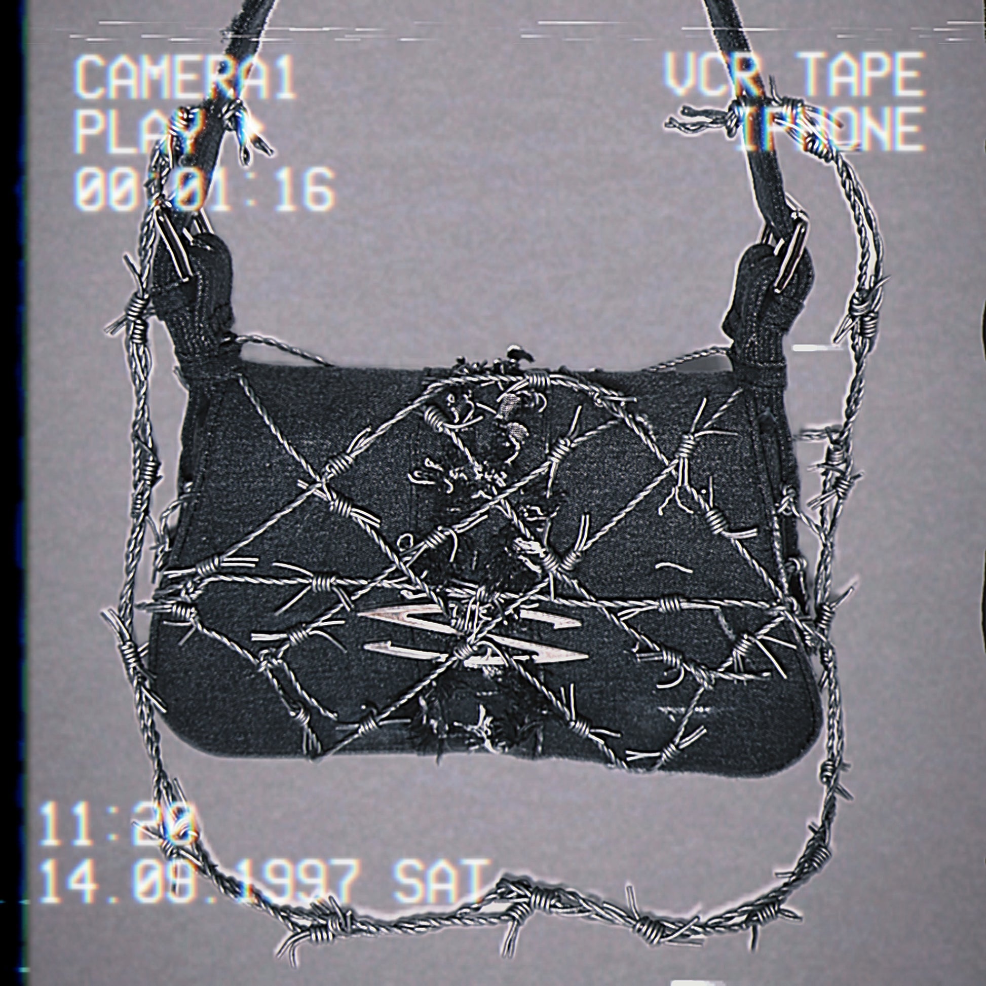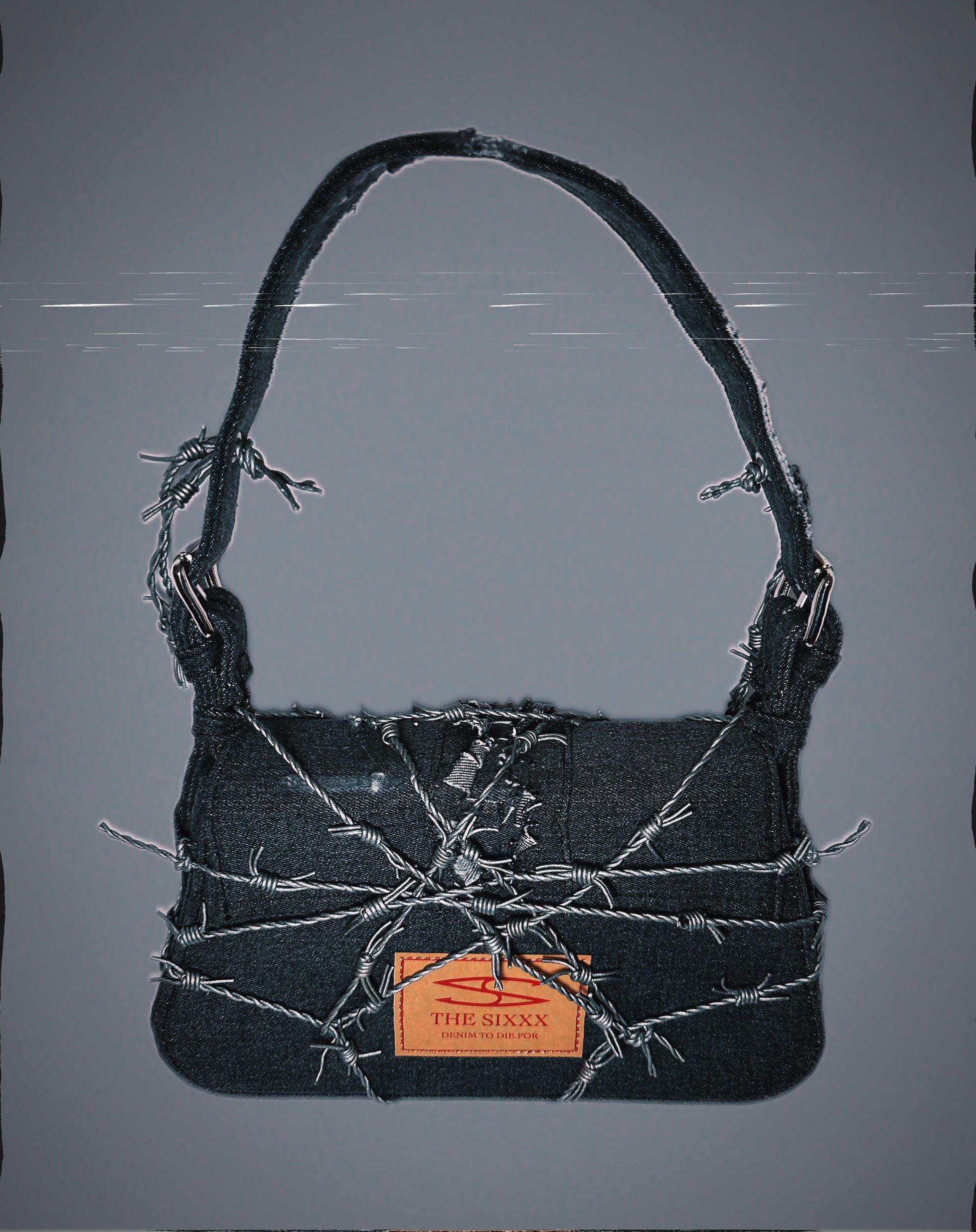 This custom bag has me hand distressed and wrapped in leather barbed wire for a dangerous look. A longer strap made of leather barbed wire is added to be worn as a crossbody bag. This bag is a 1 of 1, no one will have the same bag. Ever!